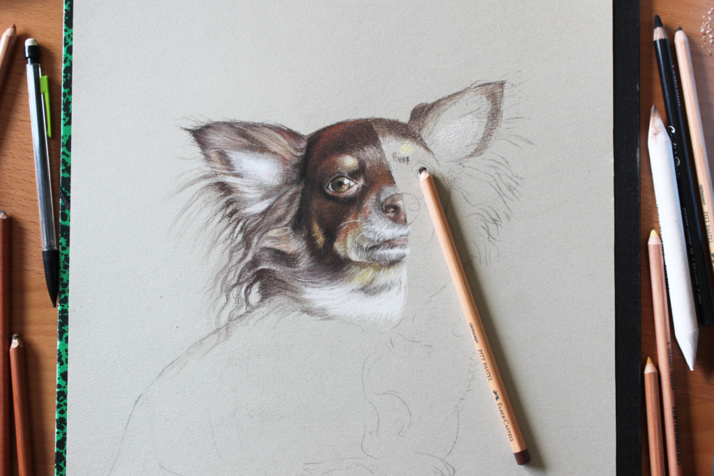 En parallèle je me suis spécialisée dans le portrait au fusain et pastels.